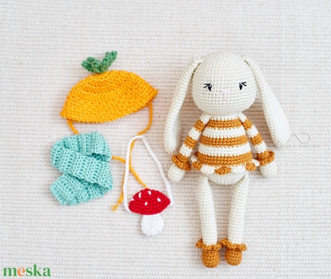 Őszi öltözetes horgolt nyuszi AJÁNDÉK gomba könyvjelzővel