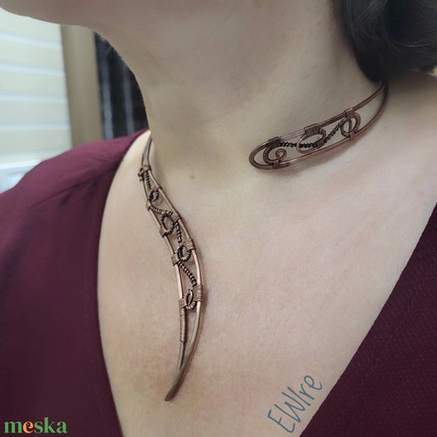 Vörösréz nyakèk, merev íves aszimmetrikus réz nyaklánc