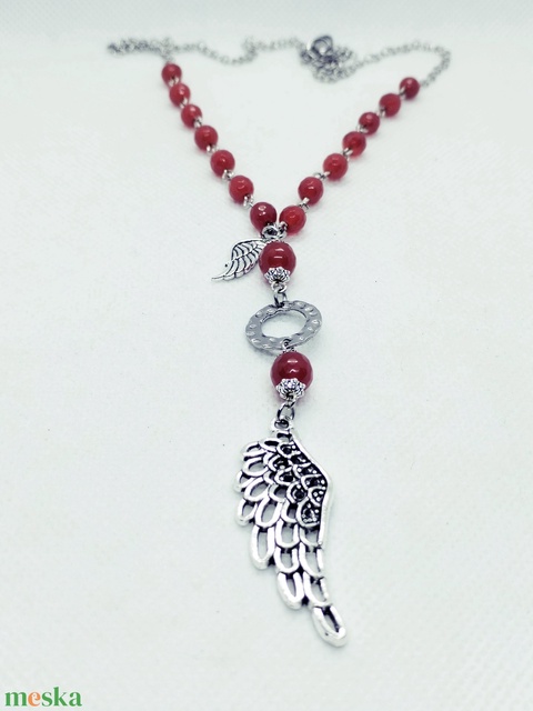 Angyalszárnyas amulett karneolból, nemesacél láncon
