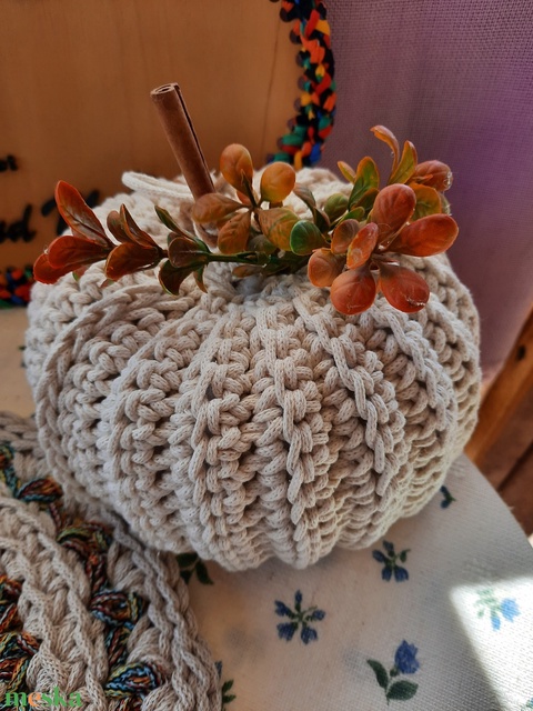 Horgolt őszi dekor szett: asztali alátét, makk tároló, töldísz.