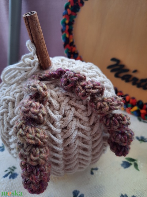Horgolt őszi dekor szett: asztali alátét, makk tároló, töldísz.