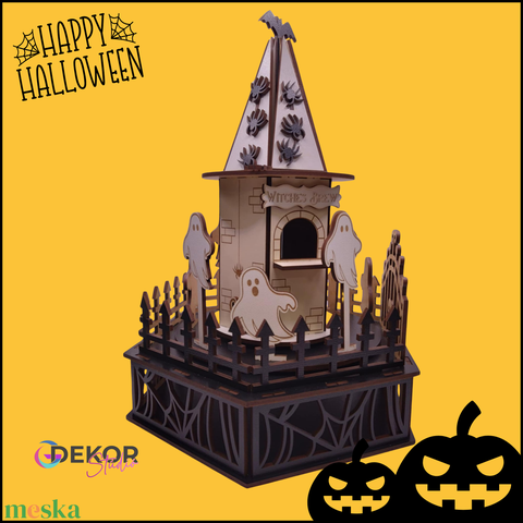 Halloween szellemkastély – fa asztali dekoráció