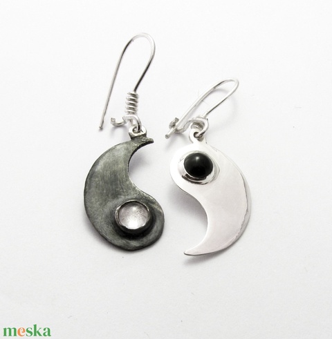 Ezüst yin-yang fülbevaló pár hegyikristállyal és onixal