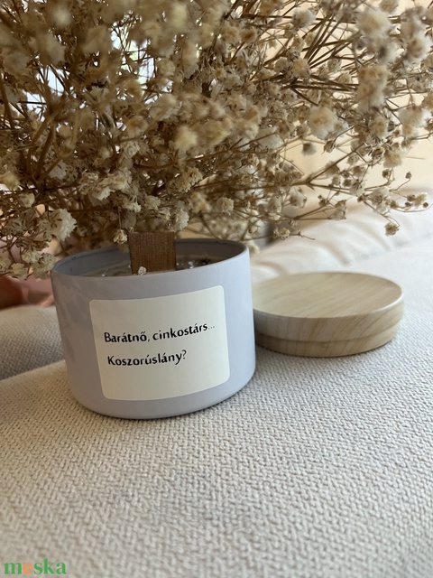 Koszorúslány felkérő, egyedi feliratos kézműves szójaviasz gyertya