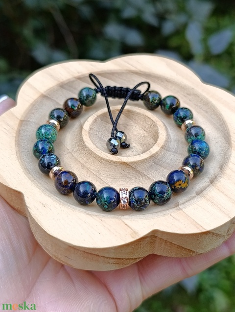 Azurit-malachit állítható női ásványkarkötő