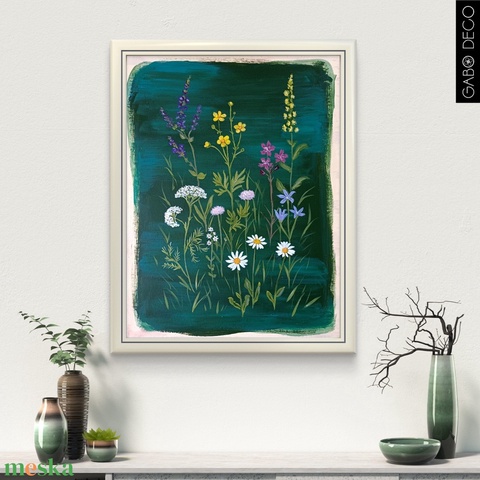 Vadvirágos, botanikai akril festmény, vászonkép