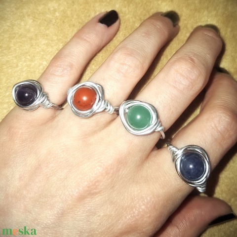Ásványköves drót gyűrű (ametiszt, vörös jáspis, zöld vagy kék aventurin)