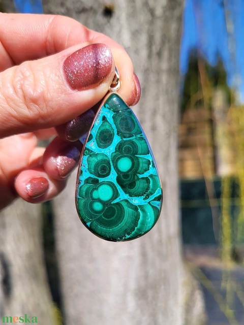 Ezüst Azurit- Malachit medál ( csepp forma)