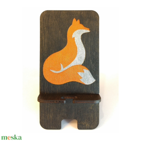 Prémium asztali telefontartó róka mintával, ébenfekete színben
