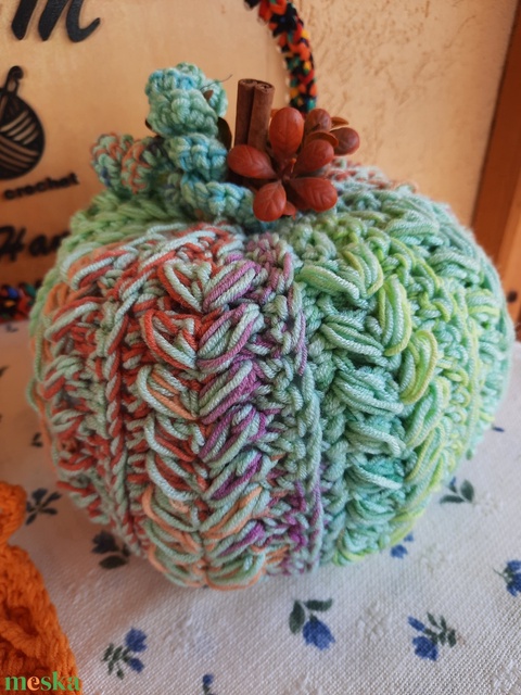 Óriás, búzakalász mintájú horgolt tök asztali dísz.