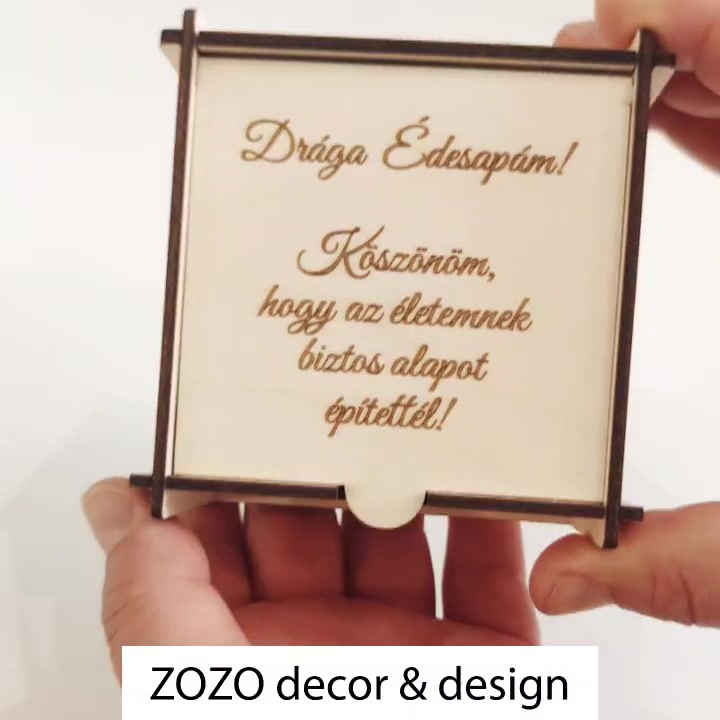 Édesapáknak, nevelőapáknak, keresztapáknak, vagy nagypapáknak szóló különleges köszöntő ajándék a Nagy napra. Az egyedi gravírozott mérőszalag és díszdoboz szívből jövő szavakkal fejezi ki az iránta érzett háládat az esküvőd napján. Egyedi, általad megadott feliratokkal is elkészítjük neked, hogy még személyesebb legyen az ajándékozás.