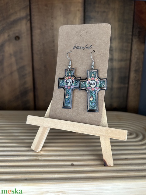 Sugarskull koponya koponyás kereszt halloween fülbevaló