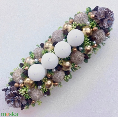 Adventi asztaldísz arany fehér