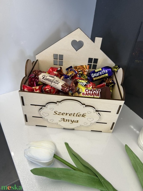 Névre szóló, egyedi üzenettel kérhető- házikó formájú ajándékkosár (doboz), amely akár virágtartó boxként is szolgálhat, csak a képzeleted szabhat határt.