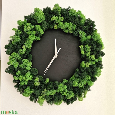 Zuzmós falióra, minimalista, fekete - gondozásmentes stabilizált izlandi zuzmóval, izlandi moha