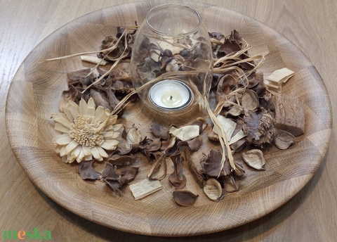 Kézműves Tölgyfa Dísztányér – Mécsessel, Természetes Eleganciával