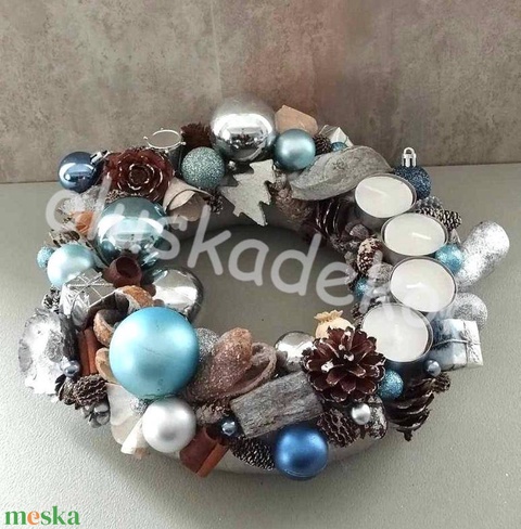 Adventi, karácsonyi jeges varázs asztaldísz, koszorú, 25cm