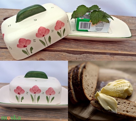 Tulipános közepes kerámia vajtartó