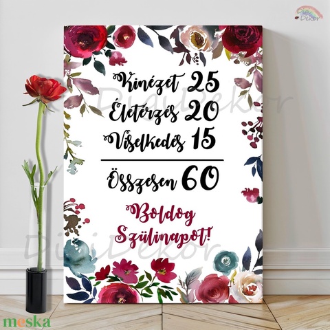 Bordó virágos szülinapi tábla Mamának, Anyának, Dédinek