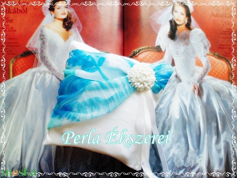 - Anyaga: szaténanyag, selyem, gyöngydísz