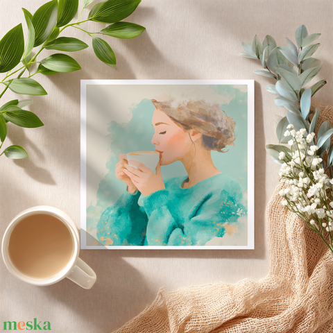 Elegáns kávés falikép – Kávézó hölgy motívummal