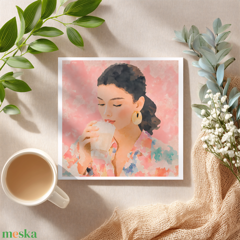 Elegáns kávés falikép – Kávézó hölgy motívummal