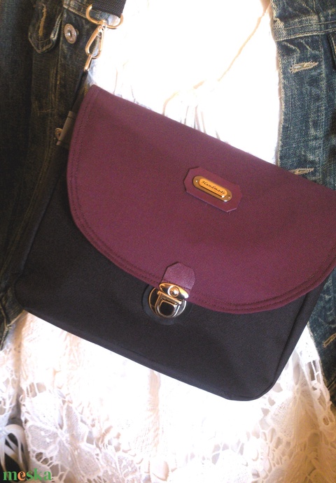 Padlizsán - fekete - crossbody válltáska/testtáska - ajándék- variálható táska - Heva táska