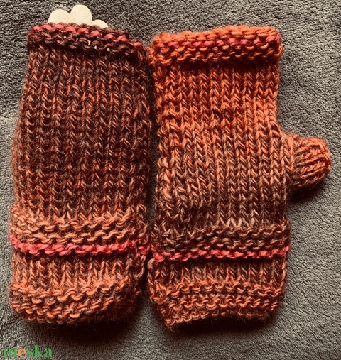 Kesztyű, Kézi kötésű őszi falevelek színében pompázó ujjatlan merinó gyapjú kesztyű eladó.
