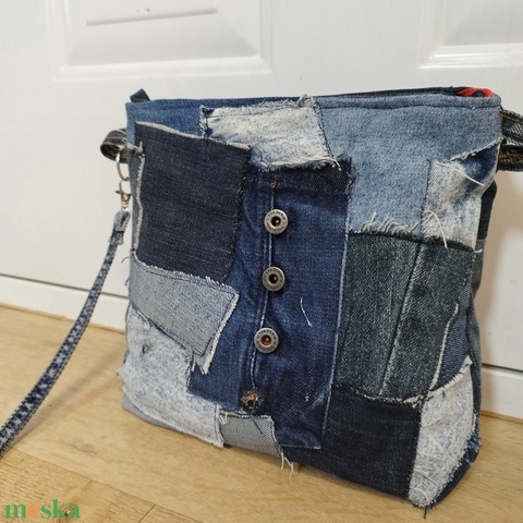 Női farmer válltáska - patchwork