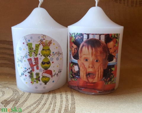 Karácsonyi gyertya Grincs vagy Kevin mintával