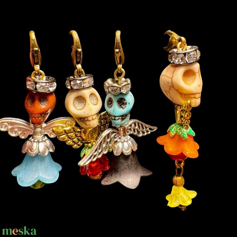 Halloween charms, Frida Kahlo medál, vidám koponya fityegő, Sugar Skull charm karkötőre, nyakláncra, kulcstartóra