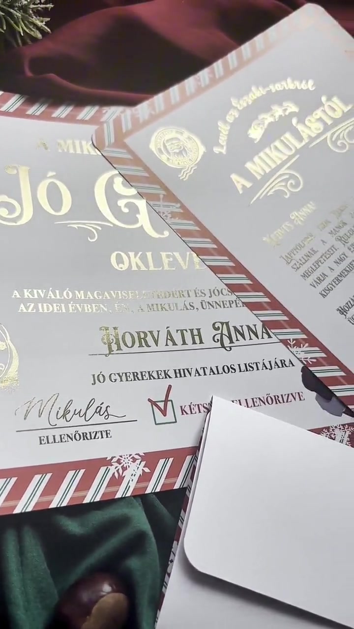 Egyedi Mikulás levél és Oklevél – Aranyozással és Viaszpecséttel