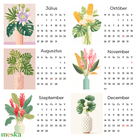 2026-os Trópusi levelek asztali naptár – A5 és A6 méret, fa tartó talppal