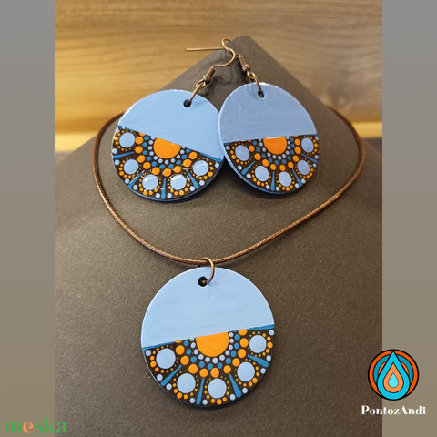 Azték stílusú fülbevaló és nyaklánc szett