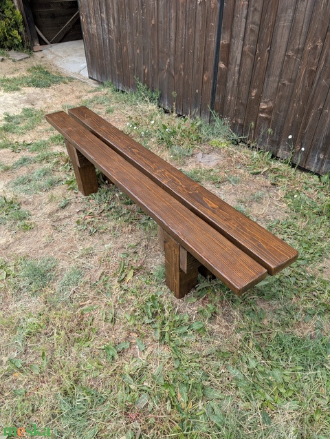 Nagy rusztikus kültéri pad gerendából, extra erős kivitelben