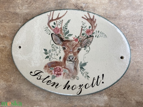 Ovális formájú Isten hozott tábla szarvassal