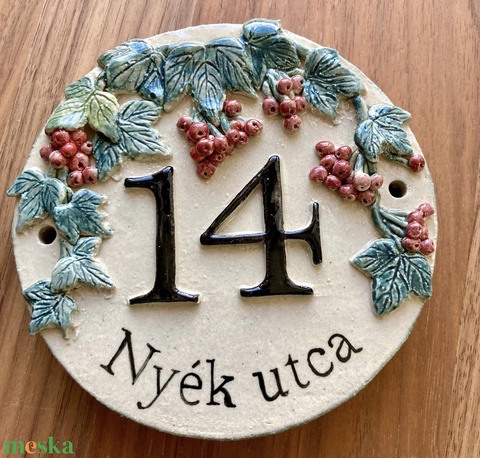 Kerek házszámtábla ribizlivel vagy vörösáfonyával