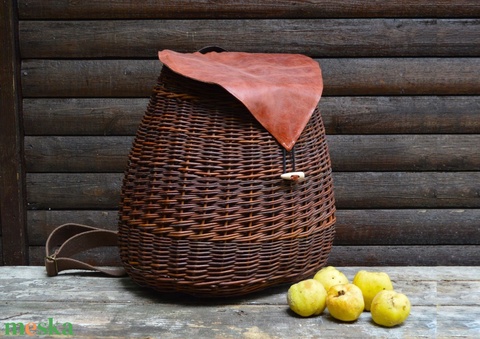 HOBBIT HÁTIKA natúr fűzvesszőből, bőr fedlappal