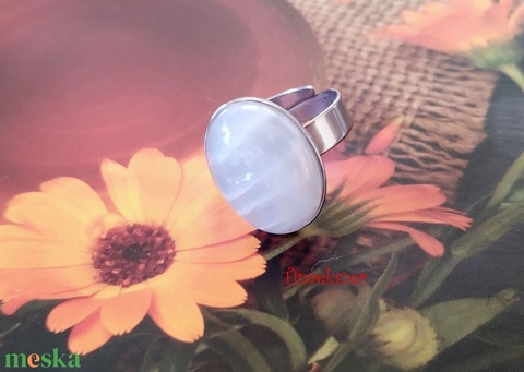 - Anyaga: szivárványos holdkő, acél gyűrűalap