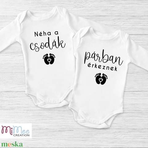 A csodák párban érkeznek - dupla baba érkezést bejelentő, bababejelentő body ikreknek