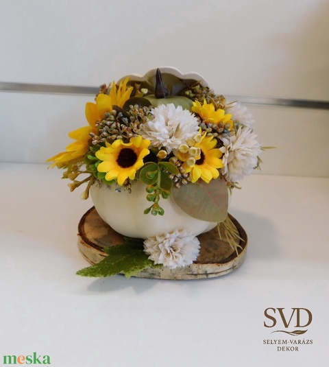 - Anyaga: kerámia, fa, selyemvirág, műzöld
