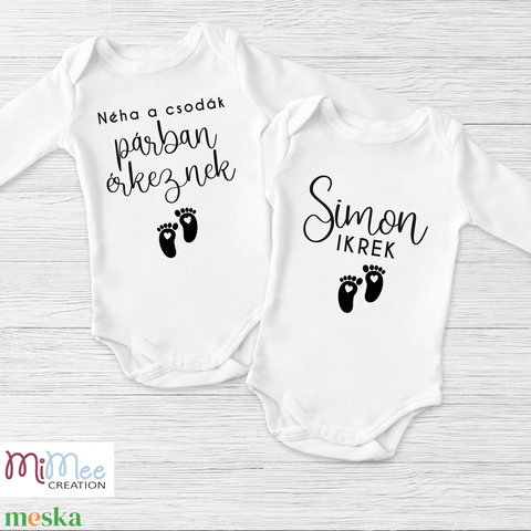 2db baba bejelentő body ikrek részére, családnévvel - ikres bababejelentő body ajándékcsomag