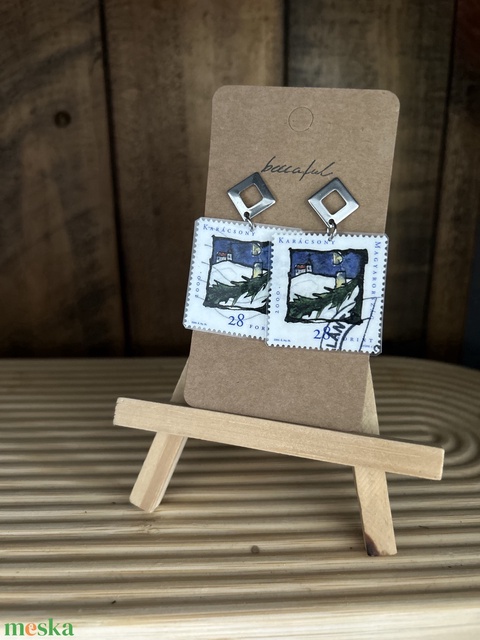 Régi vintage bélyeg fülbevaló karácsony karácsonyi