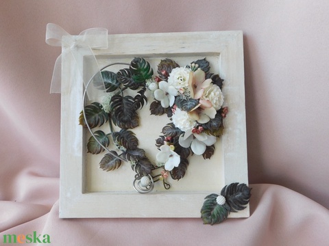 - Anyaga: fa, fém, gyöngy, műzöld, selyemvirág