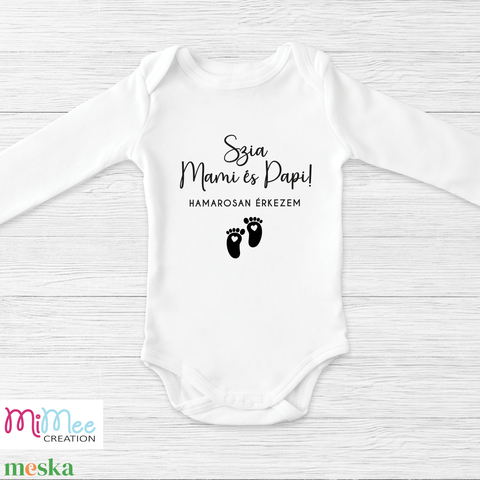 Szia, hamarosan érkezem feliratos baba bejelentő body