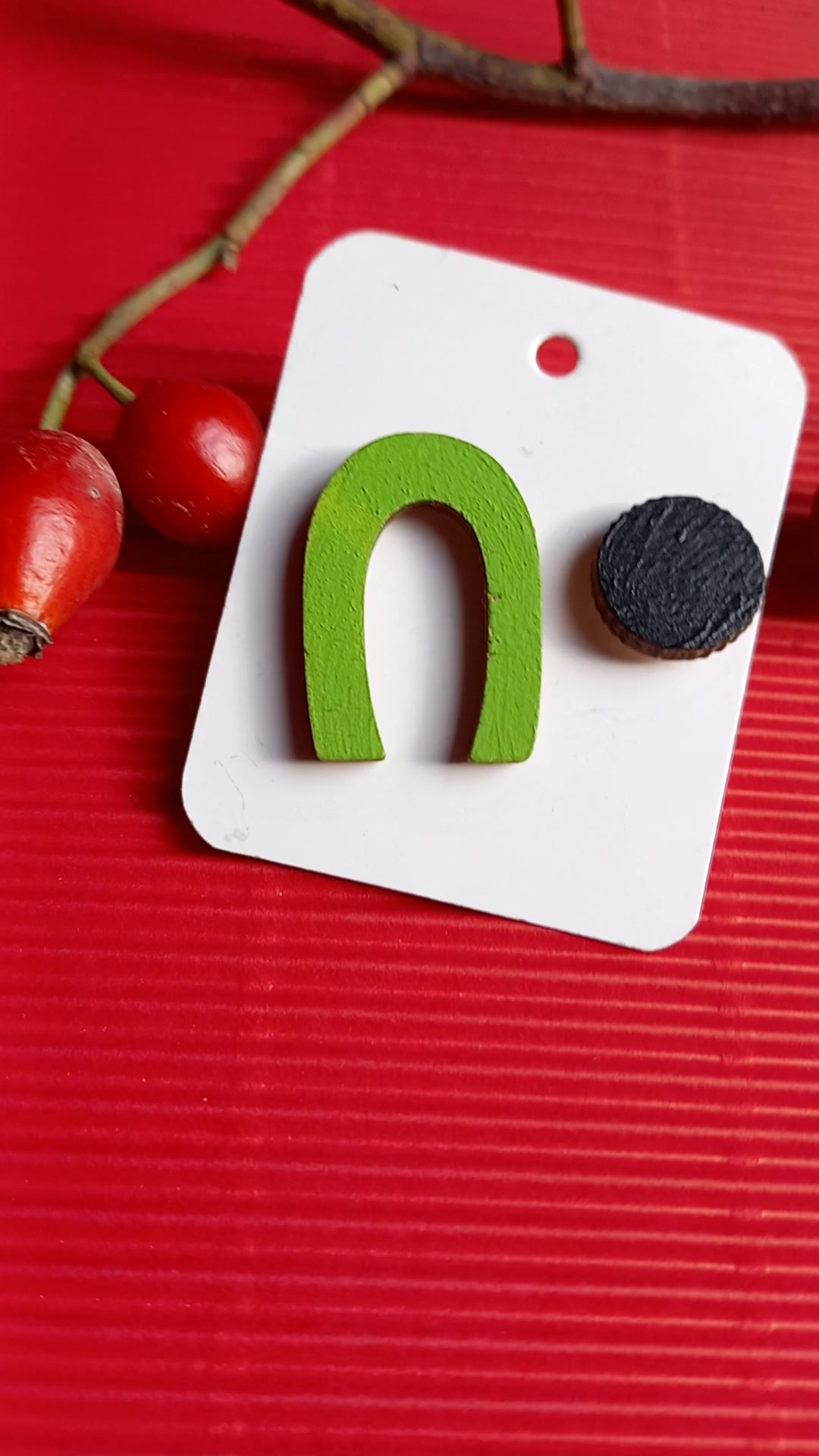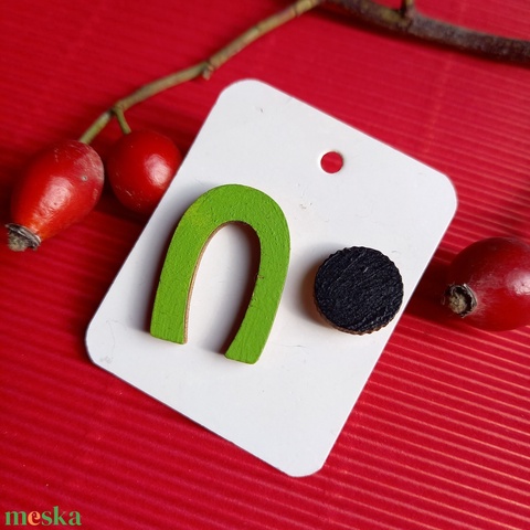 Fekete-zöld aszimmetrikus bedugós fa fülbevaló
