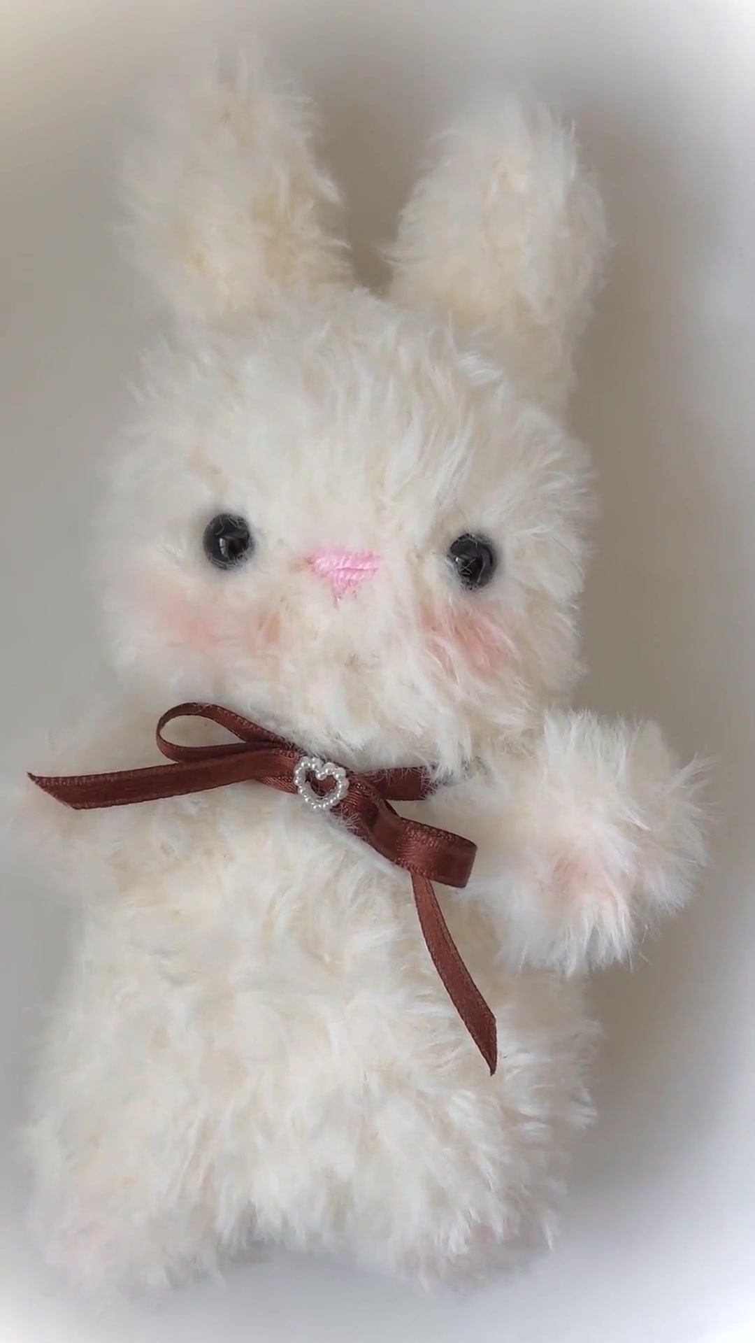 Snow Bunny - Szőrmés horgolt nyuszi plüss (választható masnival)