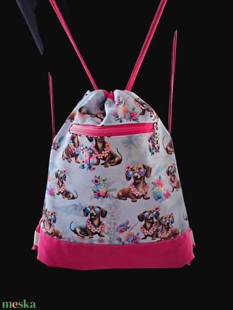 - Anyaga: vízlepergető textil, fém, húzózsinór, műanyag, pamutvászon
