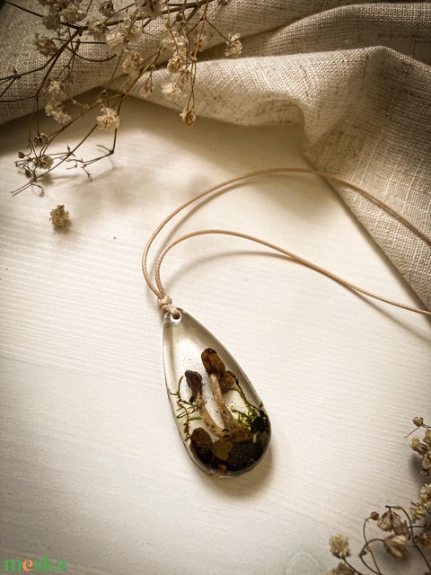 Medálos nyaklánc - Gombákkal díszített műgyanta medál - Gombatündér könnye