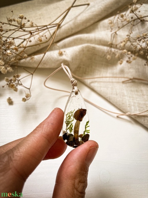 Medálos nyaklánc - Gombákkal díszített műgyanta medál - Gombatündér könnye